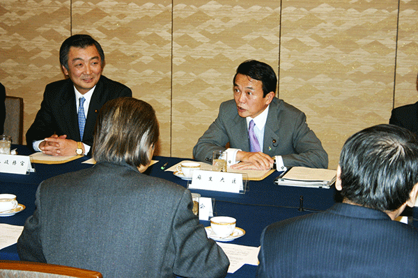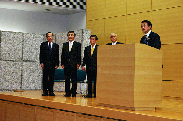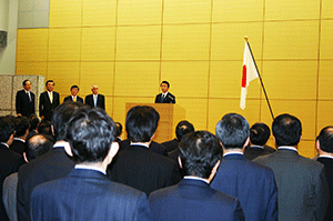 馬車道の新年会に続き東京へ向かいました。まずは麻生太郎総務大臣の会館事務所に新春のご挨拶に伺い、その後ただちに総務省に向かい、幹部職員を集め開かれた御用始式に出席しました。大臣からは時代の節目、重要な変革のとき、皆で力を結集し、この諸課題を乗り越えようという趣旨のご挨拶がありました。