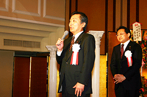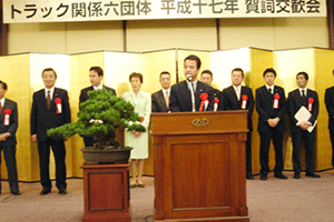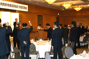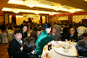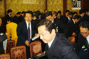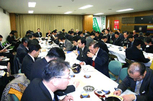 午後5時45分まで麻生総務大臣と住基ネットに関する報告を行っていたため、午後6時から始まっていたこちらへは大遅刻です。残念ながら宮崎理事長の挨拶は聞けませんでした。BSE問題から不況の影響もあってか、業界はまだまだ厳しい状況が続いています。しかし、あきらめたらおしまい。今年一年頑張って明るい年にしてもらいたいと思います。