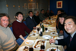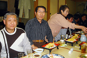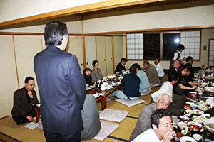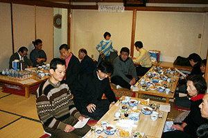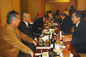 時間は押してしまい、到着は午後8時を回ってしまいました。しかし、商店街の新年会で、皆さん仕事を終えて店を閉めてから出席されるので、到着したころが一番のっている時間帯でもありました。駆けつけ三杯で日本酒をぐびぐび。このあともう一軒呼び出しがあり、中座しましたが大変ご馳走になりました。ありがとうございました。