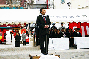 午前9時半から金沢区の新春消防の集いに総務大臣政務官としてお招きいただきました。ご配慮に感謝すると共にこれからの消防の重要性について、本日中国北京に旅立った麻生総務大臣からお預かりしたメッセージを私からご披露しました。今年は国民保護法にのっとり有事の対応なども消防団の皆さんにお願いしなければなりません。地元における活発な活動がその新たな体制作りに大きな影響を与えることになると思います。消防団の活動は昼夜を問わず大変ご苦労の多いことで、そのご尽力に敬意を表すると共に、本日消防団活動を通じて表彰された皆様に心からお祝い申し上げます。