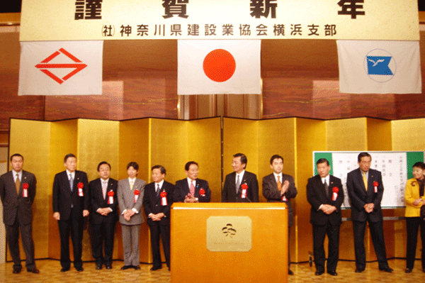 同時刻に開催されていた横浜市建設業協会の新年会に遅刻で入りました。大変厳しい経済環境の中で、適正な入札制度などが求められていますが、入札価格が低ければよいとなれば、逆に品質レベルを落とすことのないような手立てが必要になってきます。街づくりはまさに建設業界がしっかり本物の仕事をしてもらわなければなりません。活躍を期待するとともに、我々はその環境を整備していかなければなりません。
