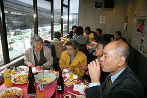 会場のある西区から磯子区に移動です。磯子のクリーニングの皆さんの新年会にお邪魔しました。到着した時は8時を過ぎており、すでに宴たけなわ状態でした。皆さんから北朝鮮問題、ODA問題などなど、まさに朝まで討論会になりそうでした。十分お答えはできませんでしたが、またお話できる機会を作っていただきたいと思います。
