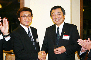 中区の恒例の新年会に金沢区から飛んで行きました。挨拶の予定はなかったのですが、高橋実行委員長から総務大臣政務官として中区に対して何ができるのか、今年の目標数値を掲げた所信を表明するようご指名がありました。今まさに国の形を変える三位一体改革をはじめ市町村合併など地方分権を懸命に進めているところですから、地方、つまり横浜市への権限委譲と財源移譲により自由度を増した自主的地方自治体の運営により、中区も区長を中心に皆さんの重要と判断される施策が実現することになるとお答えしました。