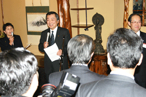午後6時半頃東京を出ましたので、到着は既に7時を回っていました。しかし、黒川会長にお目にかかり、お招きいただいたお礼を申し上げ、またご出席の皆さんへの新年のご挨拶の機会も頂戴しました。やはり各商店街の景気は厳しい状況が続いているようで、中央の調査結果とはズレがあります。といっても、構造・制度改革が効いてくるには時間がかかりますから、まずは自分の目の前にいる一人のお客様を大切に、その後ろにいる10人100人のお客様にもつながるような接客に努力していかなければなりません。ぜひ皆さんには頑張って欲しいと思います。
