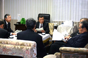 全国ビルメンテナンス協同組合連合会の幹部の皆さんが陳情に来られました。官公需適格組合という制度があり、自治体公共事業の受注が大企業ばかりに偏在しないように、中小企業の参画する協同組合を適格組合として中小企業向けに受注機会確保の措置が講じられています。しかし、昨今の公共事業抑制に伴い競争が激化している状況から、閣議決定されている中小企業に対する支援を適正に求めるという要望でした。現場での様々な問題点をご指摘いただきましたので、細部にわたり確認したいと思います。