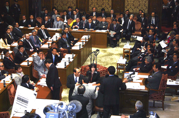 昨日に引き続き、衆議院本会議での代表質問です。今日は午後1時半から午後6時までの長丁場です。質問者は、昨日の積み残しの小宮山洋子(民無)議員と、野田佳彦(民無)、神崎武法(公明)、穀田恵二(共産)、横光克彦(社民)の各議員です。小宮山議員からは少子化への対応、子育て支援等について質問がありました。野田議員からは平成17年度予算案、財政健全化、郵政民営化等について質問がありました。神崎議員からは災害対策、中小企業対策、社会保障制度改革、外交問題等様々な分野の質問がありました。穀田議員からは税制改正、郵政民営化、NHK等について質問がありました。横光議員からはイラク問題、政治とカネの問題、NHK、郵政民営化等について質問がありました。民主党の議員からは今日も再質問がありましたが昨日ほどの混乱はなく、予定より早く質疑は終わりました。
