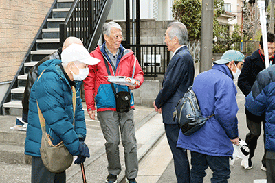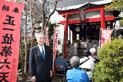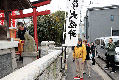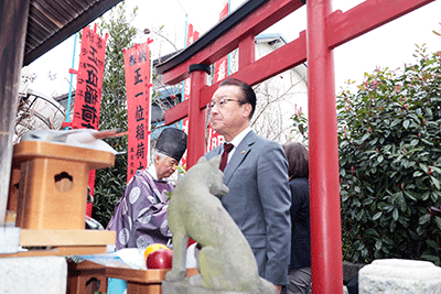 第六天稲荷「初午行事」が第六天稲荷神社で開催され松本純が参拝しました。晴天に恵まれた初午行事は稲荷会や町内会の方々が接客をされ、町内会員にはフランクフルトや豚汁が振る舞われました。松本は神社参拝後、大和町立野町内会・熊王新太郎会長や稲荷会、町内会の方々に初午行事のお喜びを申し上げました。また消防団員として活躍されている五月女清子さんからは松本に「お時間のご都合がついたらお店(鉄板焼き・おでん)にもお寄り下さい」と激励をいただきました。地元の原県議、伊波市議、松本研市議もお祝いに訪れていました。(秘書森報告)