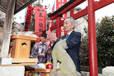 中原正一位稲荷大明神初午祭が耕地稲荷神社で斉行され松本純が参拝しました。中原熊野神社・杉原博昭宮司の祝詞奏上に続いて玉串が奉納され、続いて鹿島安雄講元代表と講中の方々が玉串を奉納されました。関勝則市議と新井絹世県議も玉串を奉納され初午祭を祝われました。松本も玉串を奉納し地域と講中の安寧を祈願いたしました。(秘書森報告)