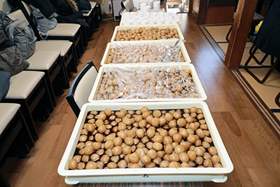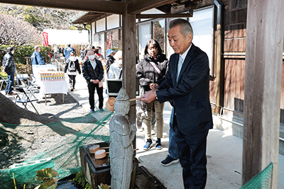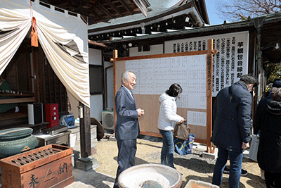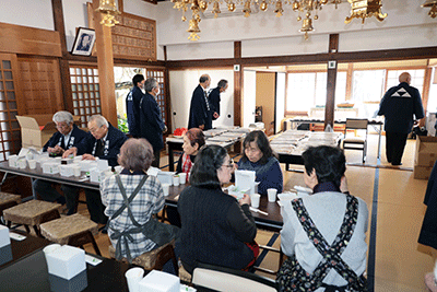 長昌寺芋観音御開帳縁日法要が長昌寺で開催され松本純が参拝いたしました。参拝に訪れた時には石澤彰文住職による読経は終わっていて琴の演奏が本堂で行われていました。松本は本堂にお参り後、芋観音像にお参りし芋観音のご利益と富岡地区の安寧をお祈りしました。多くの参拝者が訪れる中、檀家信徒の方々に促され本堂にて接待を受け玉蒟蒻や里芋など「芋のおもてなし」をいただきました。境内では甘酒やポップコーンかわ振る舞われ参拝者をもてなしていました。(秘書森報告)