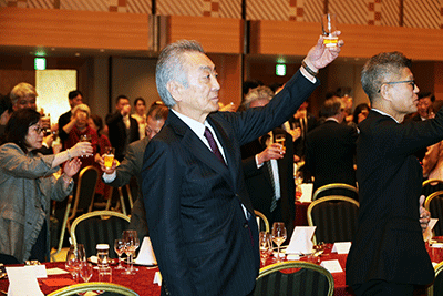 で開催されました。同会・油谷由美副会長の司会で開会し、主催者を代表し永持健会長より5年ぶりとなった新年会の時期を遅らせ「早春の集い」として開催したこと、中区薬剤師会として区民の健康を支えていく決意の挨拶がなされました。続いて中区医師会・秋山修一会長、同区歯科医師会・蕭敬意会長、小林英二中区長、神奈川県薬剤師会・小川護会長、神奈川県薬剤師連盟・平山明子幹事長より祝辞が述べられました。続いて来賓者紹介が行われ中福祉保健センター長・木村博和氏の乾杯の発声で歓談となりました。