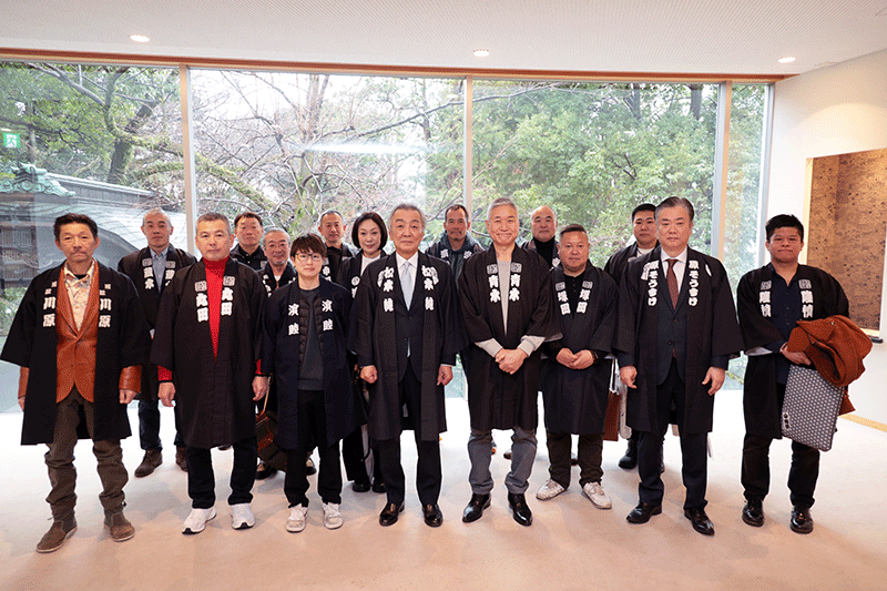 高輪ゲートウェイ駅直結の国際交流拠点の象徴となるツインタワーの中を入ると受付にて深澤祐二取締役会長、喜勢陽一代表取締役社長、その他役員にお出迎えをいただき、内覧が始まりました。街づくり部門の西村貴志マネージャーにご丁寧なご案内をいただき感謝でいっぱいです。