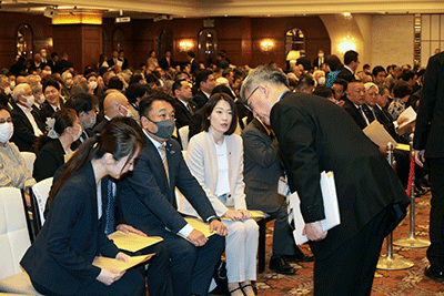 「高橋のりみ横浜市会議員15周年パーティー Bee Talk 絆」がローズホテルヨコハマで開催されました。発起人代表幹事・村松和代氏の開会挨拶に続いて発起人代表・山本欣子氏の挨拶がなされた後、発起人の皆様の紹介が行われました。そして引き続き北村博秋後援会長挨拶、来賓挨拶となりました。