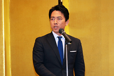 引き続き主催者を代表して県連・小泉進次郎衆会長議から、「皆様おはようございます。本日は大変お忙しい年度末にも関わらずこのように神奈川県下全域からお世話になっている皆さん、党員・党友の皆さんお集まりをいただきまして誠にありがとうございます。私が到着する5分前までNHKの日曜討論にNHK横浜支局から出てまして、そういった到着ギリギリを鑑みまして、ゆっくり目に党歌と君が代斉唱をやっていただきまして本当にご配慮ありがとうございます。また最初に物故党員をはじめとする方々に黙祷を捧げましたけども、私の叔父でもある秘書の鍋倉についても含めていただきまして、お世話になった全ての皆さんに改めて御礼申し上げたいと思います。
