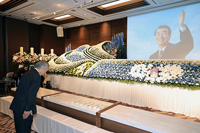 神奈川県議会議員として長きにわたりご活躍され、前回の統一地方選挙で引退された牧島功先生がご逝去されました。本日「故牧島功お別れの会」〜ありがとう心より感謝を込めて〜がプラザヨコスカ中央本社斎場にて営まれました。弔問した松本純は長女の牧島かれん衆議にお悔やみを申し上げ、牧島功先生のご冥福をお祈りいたしました。会場には生バンドが準備をしており何故?と思いましが、実は、功先生は音楽好きで作曲をされれるほどだったそうです。お別れの会の式典ではその作曲された曲が生演奏される予定とのこと。功先生の享年は80歳でした。改めてご冥福をお祈り申し上げます。(秘書森報告)