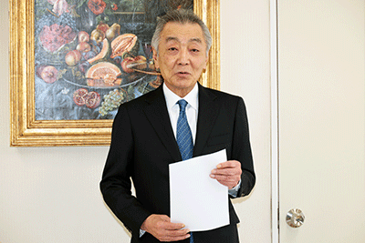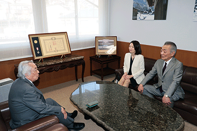 わざわざ横浜までお出かけいただき、この度の叙勲に対する祝意を頂戴しました。誠にありがたく感謝申し上げます。今後もご指導いただく中で微力を捧げたいと存じます。