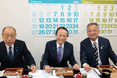 志公会例会が志公会事務所で開かれました。今日も元気いっぱいの麻生太郎会長でした。麻生会長の挨拶で、少数与党ではあるが令和7年度予算が衆参で審議を終え成立したことにつき、予算委員会などの担当議員に慰労が述べられ、続いて国会後半戦に入り重要審議が行われて行く上での注意事項、また夏の参議院選挙では過半数保持が必須であると檄が飛ばされました。自民党として日本の国家をどのように運営し、何を目指して行くのかをしっかり示して行かなければならないと語りました。引き続き各担当議員より定例報告がなされました。(秘書森報告)