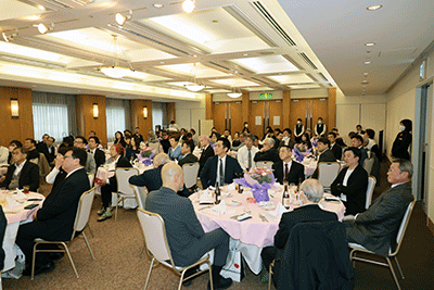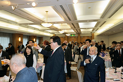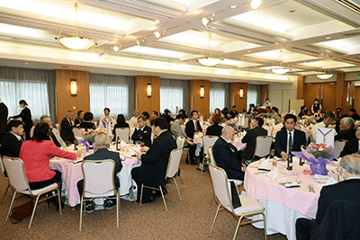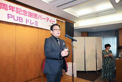 「PUBドレミ45周年記念パーティー・淑子ママ古希のお祝い」が横浜テクノタワーホテルで開催され松本純が出席しました。金沢区富岡でPUBドレミを営む佐々木淑子さんはお嬢さんの真里子さんと共に登壇し「今日はどうもありがとうございます。何を話そうかと昨日から考えていましたが考えがまとまらず、そのままで話したいと思います。45周年(PUBドレミ開業)で私が得たものは、景気の良い時はお金もあり、景気が悪くなればお金も無くなる・・・、残ったのは今日来てくださった皆様との人脈が財産です。皆さんどうもありがとうございます。これからもう少し生きてられると思うので、どうぞドレミを支えてください。今後ともよろしくお願いいたします。今日は本当にありがとうございます」とご挨拶されました。続いて来賓祝辞、祝電披露が行われて乾杯の発声で祝宴となりました。松本は丁寧に淑子さんにお喜びをお伝えしました。(秘書森報告)
