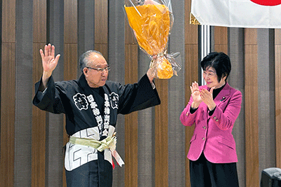日本神輿協会令和7年第45回定時総会懇親会が、日本神輿協会(岩崎武司会長)と日本神輿協会アカデミー(時田公代理事長)の共催で開催されました。恒例の明るいお囃子に迎えられて懇親会が始まりました。冒頭、懇親会に先立つ総会で岩崎会長が名誉会長に、時田会長代行が新会長になることが決まったとの報告がなされました。そして時田新会長より「皆さん方のお力を借りながら、素晴らしい神輿協会を続けていきたいと思っております。さらに50年、60年と続く会にしたいと思っておりますので、ますますの皆さんの応援を期待しております。今日は誠にありがとうございました」とご挨拶がありました。続いて山東昭子参議院議員、竹谷としこ衆議院議員、土田慎衆議院議員より来賓挨拶がなされ、都議会議員、議員秘書からもお祝いが述べられました。会長を33年間務められた岩崎名誉会長に山東神輿協会顧問から感謝の花束が贈呈されると、岩崎名誉会長から時田新会長へエールが送られました。乾杯の後は賑やかな懇親会となりました。(秘書鈴木報告)