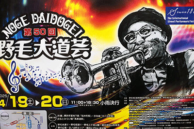 松本純は第2代大道芸実行委員長でした。4月19日、20日の二日間にわたり野毛地区で「第50回野毛大道芸」が開催されます。このPRのお手伝いをしています。