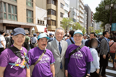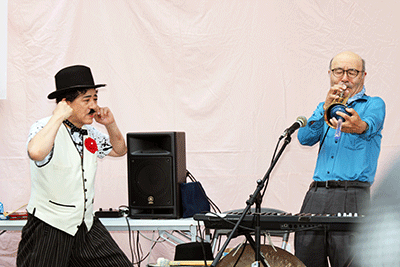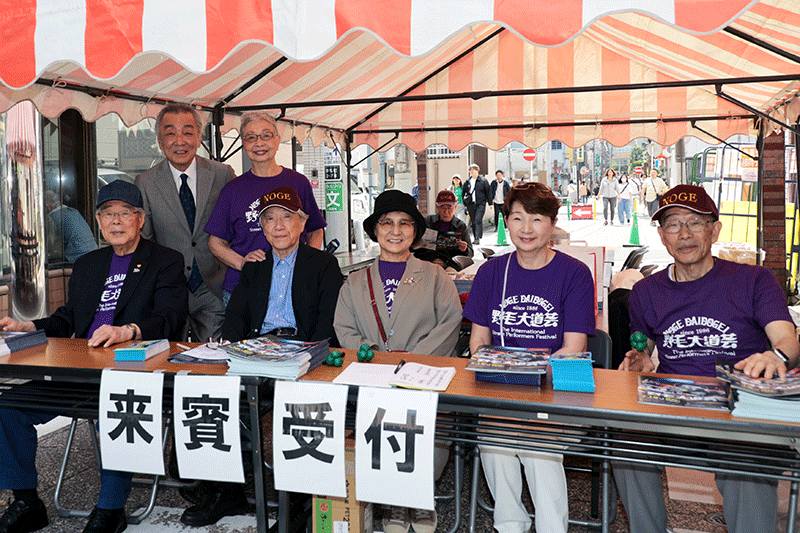 第50回野毛大道芸が開催されました。今日、明日と行われる野毛大道芸は節目の50回を迎えました。日本三大大道芸に数えられ、初夏思わせる好天に恵まれ多くの方々が訪れました。野毛本通り、野毛坂、日ノ出町エリアから成田山横浜別院駐車場までの13会場で大道芸人さんのパフォーマンスが披露され拍手と歓声が各会場で湧き起こっていました。野毛で生まれ育った松本純は本部テントを訪れて、大会実行委員長を務める田井昌伸さんや実行委員の方々に街づくりとして始まった野毛大道芸が半世紀続いて来たお喜びを申し上げました。松本自身は第2回の野毛大道芸実行委員長を務めています。本部には新しく着任された永井由香区長も訪れ松本と挨拶を交わされました。各会場で大道芸人の皆さんが路上パフォーマンスを披露され大盛り上がりの中、ケチャップリンたび彦さんをメインとした野毛大道芸古参の「いぶし銀ズ」が野毛本通りで大道芸の真骨頂を披露され歓声を浴びていました。野毛大道芸は本日と明日の日曜日に行われます。是非、大道芸の魅力をご覧になって見てはいかがでしょうか。(秘書森報告)