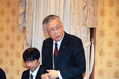 薬局経営者らとの懇談会にお招きいただき、医療保険制度の現状分析と今後の対応について意見交換を行いました。