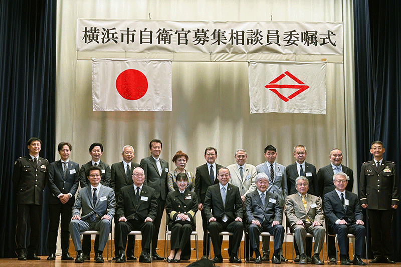 横浜市自衛官募集相談員委嘱式が横浜市開港記念館で執り行われ代理出席しました。委嘱式は横浜出張所自衛官募集相談委員会を代表して石井一也氏、自衛隊市ヶ尾を代表して松浦正義氏、自衛隊横浜中央募集相談委員会を代表して栗原俊司氏、自衛隊横浜上大岡募集相談員会を代表して山野井正郎氏が委嘱状を受け取られました。またそれぞれの募集相談所、委員会の委嘱者が読み上げられ松本は自衛隊横浜募集相談委員会に属しています。総勢117名が委嘱され2年間の活動を行って行きます。続いて山中竹春市長代理の佐藤広毅副市長、自衛隊神奈川地方協力本部長・大谷三穂一等海佐より激励挨拶が述べられました。続いて各募集相談所ごとに記念撮影が行われ委嘱式は閉式となりました。散式後は松本が所属しお世話になっている栗原俊司会長にご挨拶いたしました。(秘書森報告)