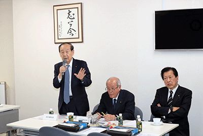 志公会例会が志公会事務所会議室にて開催されました。先ず麻生太郎会長は、例年だと海外視察などに行かれる方も多くなるところだが、今年は、都議選、そして参議院選挙が控えており、そちらに集中せざるを得ない状況かと思うとの趣旨のご挨拶をされました。その後、定例報告が各部門から行われました。(秘書白石報告)