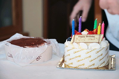孫からの誕生日のバースデーケーキがプレゼントされ、短い時間のティーパーティーになりました。嬉しいものです。