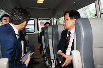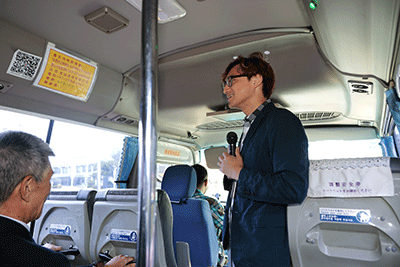松山空港に到着し、市内をバスで走り、街の様子を視察しました。