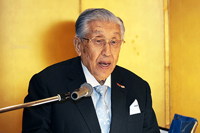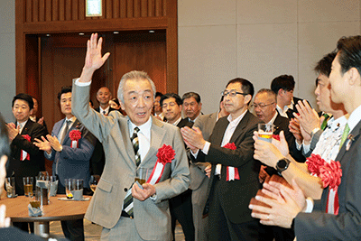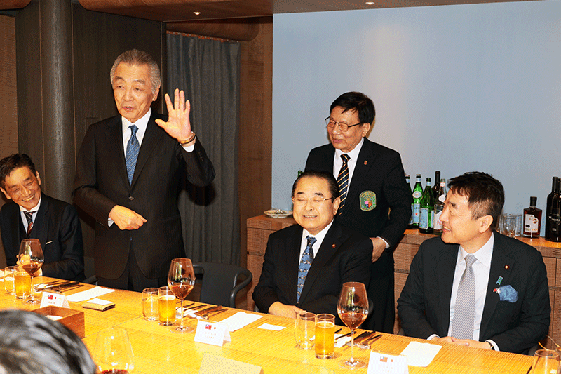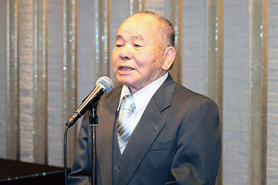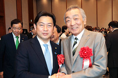 空手道・太極拳の普及に努めてこられた日本太極拳友会・錬心館・三代正廣館長の喜寿(77歳)を祝う祝賀会がロイヤルホールで開催されました。錬心館・西山智孝相談役の開会挨拶に続いて祝辞となり、日本太極拳友会名誉会長を務める松本純より「三代先生とは私が横浜市会議員に初当選した頃、平成2年になりますが、その頃から34〜35年のお付き合いとなります。昔から変わらず活発に前向きに取り組む姿勢に学ぶことも多くありました。三代先生が生まれた1948年頃の日本人の平均寿命は男性が54歳、女性が59歳でした。日本の寿命は一気に延びて今や80、90歳は当たり前になって来ています。三代先生にはこれからも益々頑張って太極拳を更に広げること。今日の演武会でも免疫力を高めるには太極拳が効果があるとご挨拶しましたが、皆さまの健康のための指導者として頑張ってご活躍していただくことをお祈り申し上げます」と祝辞を述べました。続いて日本太極拳友会・矢島孝一郎副会長の乾杯の発声で祝宴となりました。祝宴の中、空手道・野中忠師範と永年楊式太極拳国際連盟会長・傳清泉老師より祝辞がなされました。(秘書森報告)
