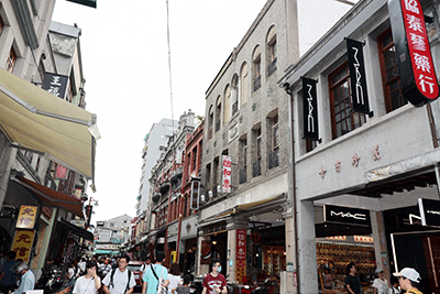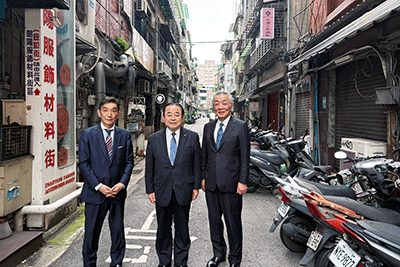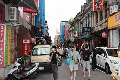 迪化街はフカヒレ、からすみ等の乾物や漢方薬などの問屋街であり台北市内でも古い町並みが残る一帯でした。(秘書白石報告)