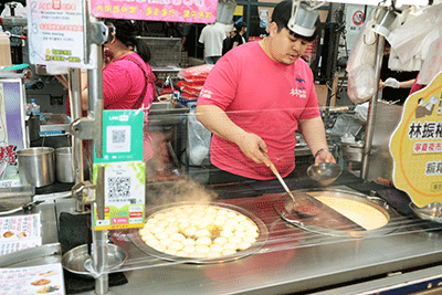 夕食前の時間に寧夏夜市を散策しました。台湾の伝統的な屋台料理がメインとなっており狭い通路に人が溢れんばかりの夜市でした。松本は愛玉ドリンク(愛玉ゼリー入り)と茹でた海老を頂きご満悦でした。