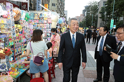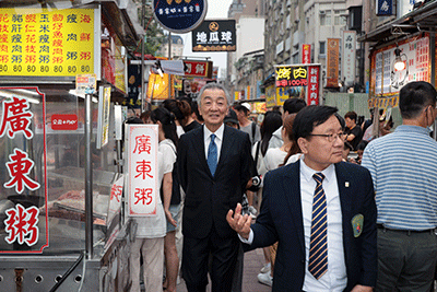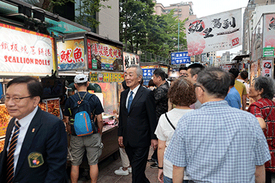 昼食懇談会後、台北市〜新北市内を観光。淡水、華山、錦町、迪化街を散策しました。淡水は台北を流れる淡水河の河口に開けた港町で17世紀にスペイン、オランダが上陸し19世紀にはイギリス領事館が置かれるなど古くから西洋文化が入っておりその影響もあり異国情緒が漂う街でした。