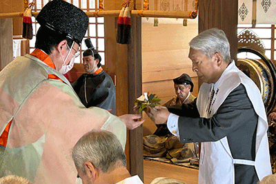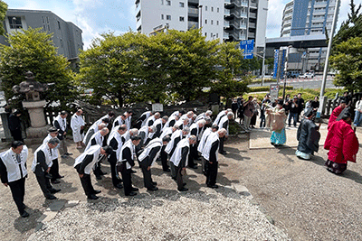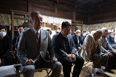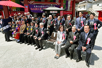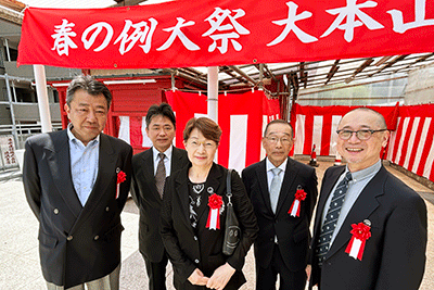 横浜成田山春の例大祭大本山貫首岸田照泰大僧正御巡錫特別大護摩供奉修が横浜成田山本堂にて執り行われ、お招きいただいた松本純の代理として出席しました。真純夫人も野毛2丁目町内会長として地元町内会の方々と共に参列されました。本堂にて大本山成田山貫首・岸田照泰大僧正による横浜成田山開創百五十五年春の例大祭特別大護摩供奉修が行われました。大護摩供奉修後は岸田大僧正より挨拶がなされ、続いて委嘱状授与、洒水が行われました。続いて横浜成田山・筒井照琢主監より横浜成田山開創百五十五年の例大祭に参列された方々に謝意が述べられ、引き続きクラウドファンディングを含め海員追悼之碑再建事業、バリアフリー化の寺として表参道エレベーター設置計画の事業継続の報告が述べられました。例大祭後は記念撮影が行われました。(秘書森報告)