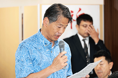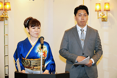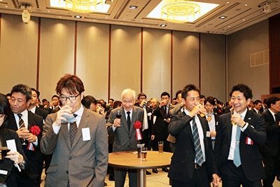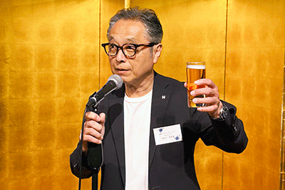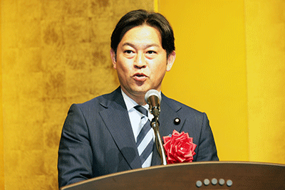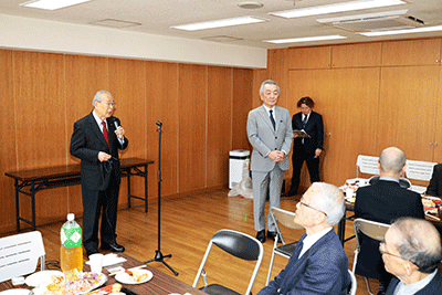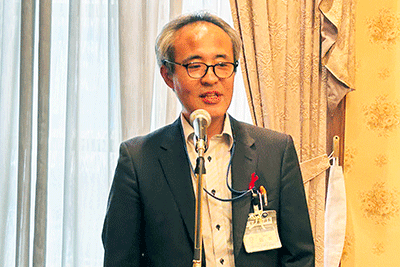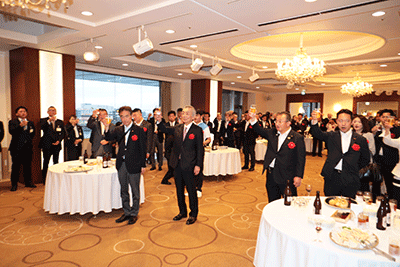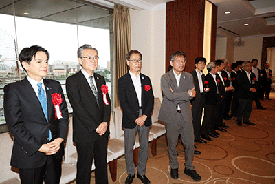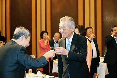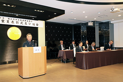 続いて来賓紹介となり代表して永井中区区長が挨拶をされました。続いて内閣府特命担当大臣・三原順子参議院議員の祝電が披露された後、乾杯となり横浜市立大学客員教授、国吉直行顧問が挨拶をされ歓談となりました。