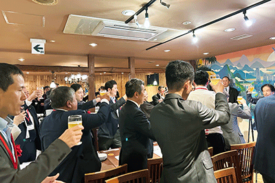 関内まちづくり振興会懇親会が横浜ビール本店「UMAYA」にて開催されました。主催者を代表して秋山修一理事長が次の様に挨拶をされました。「今、ビジョンを我々は作っています。このビジョン、とても簡単なものではない。非常に大きく振り被ったことなのですけれども、こんなに大げさなことを実行するのは